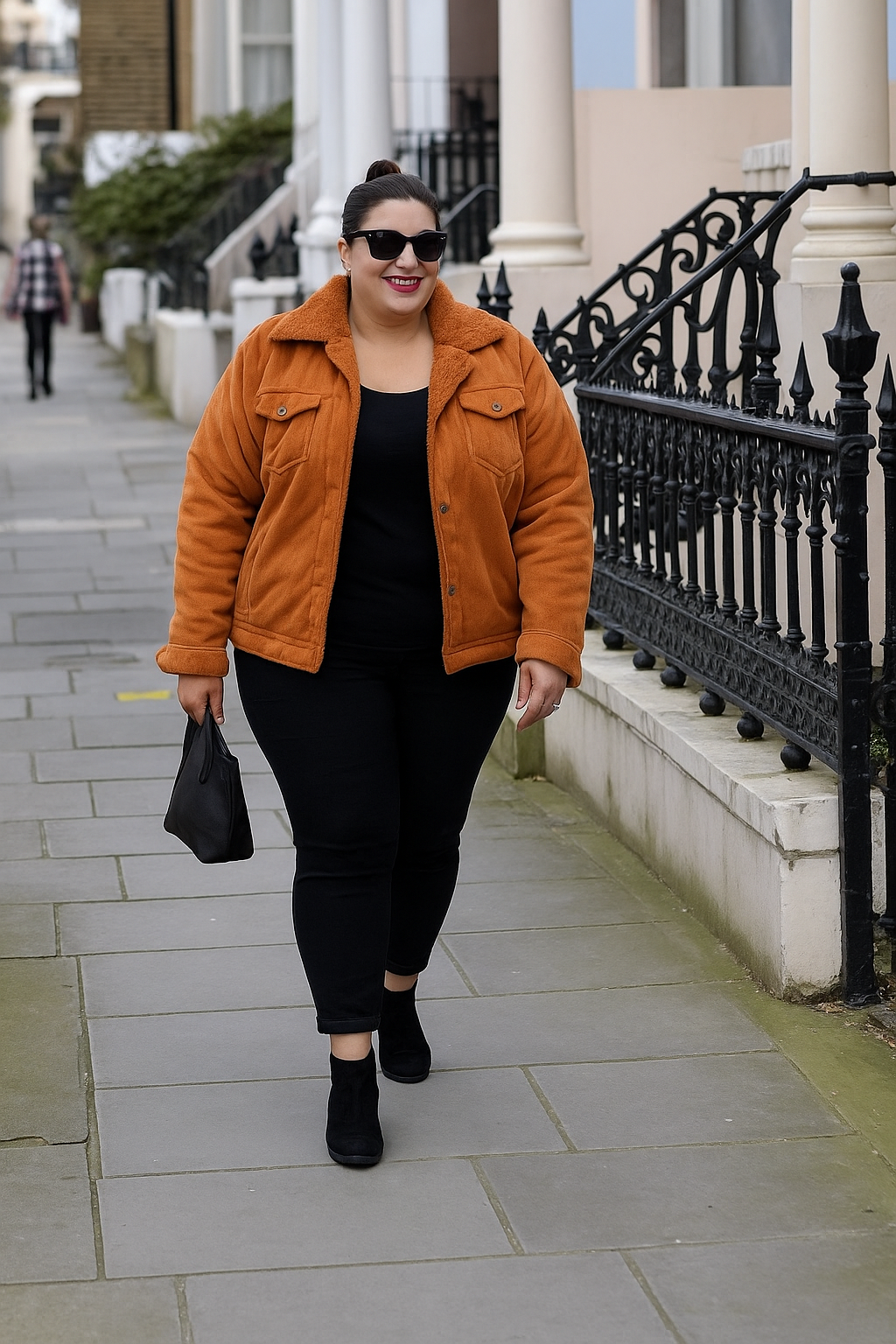 Campera confeccionada en corderoy velvet con un forro de corderito en talles especiales.