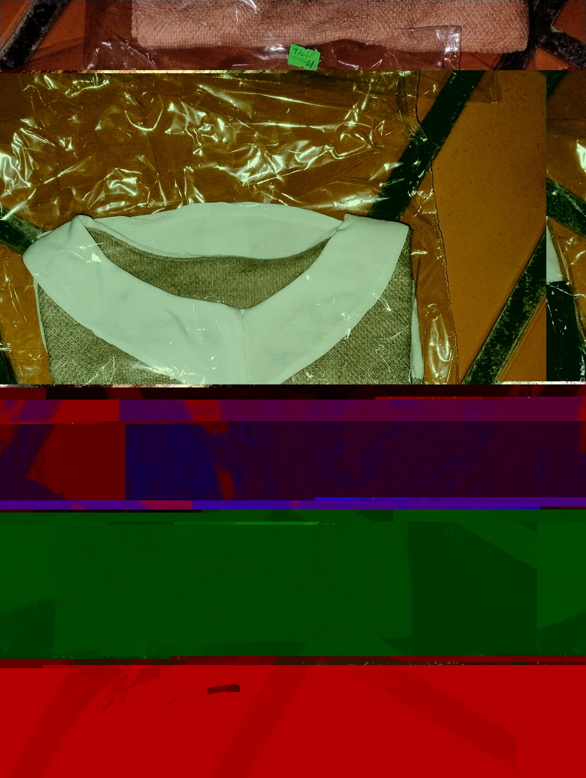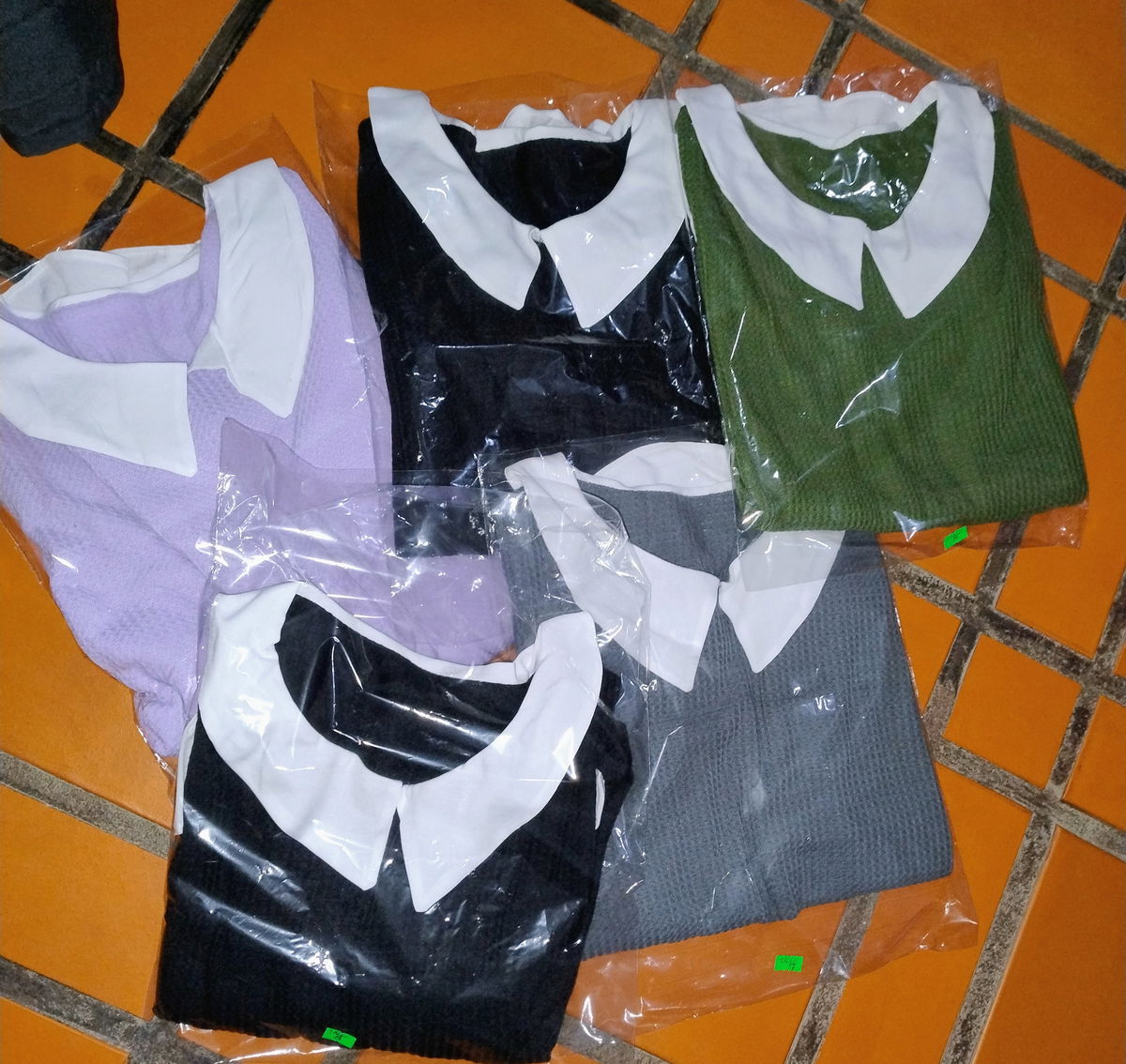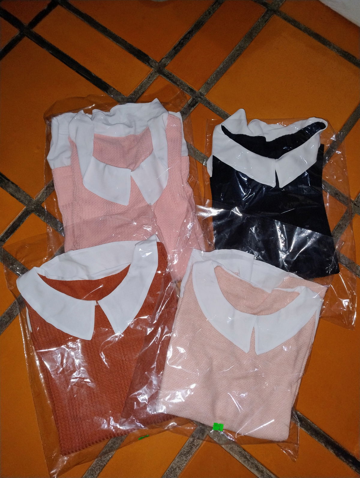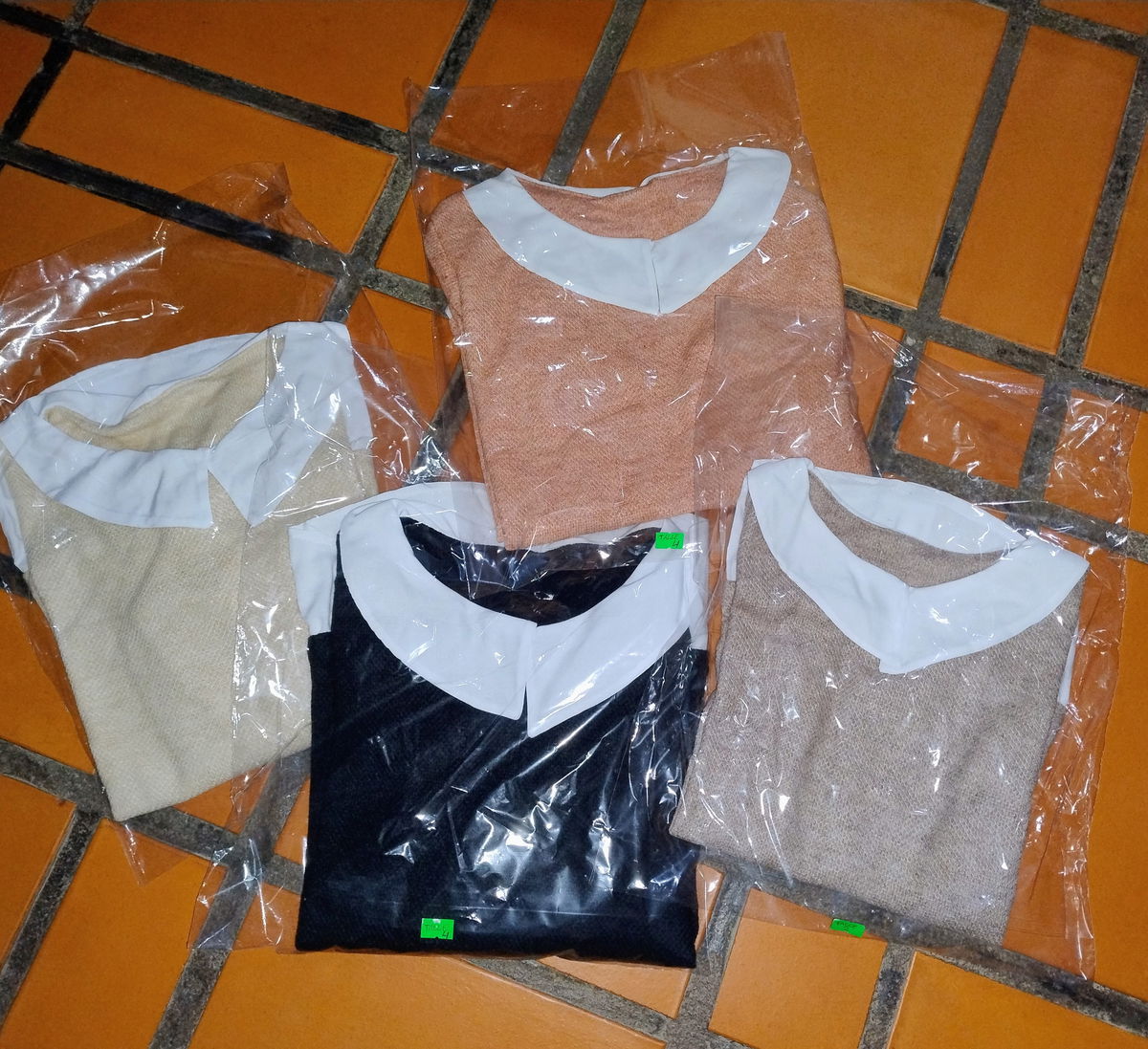Suéter confeccionado en tela de la anilla con detalles de camisa superpuesta. Es un suéter con cuello y ruedo de camisa.